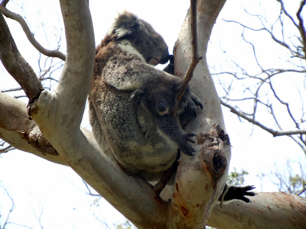 Eine Koala Mama mit Baby